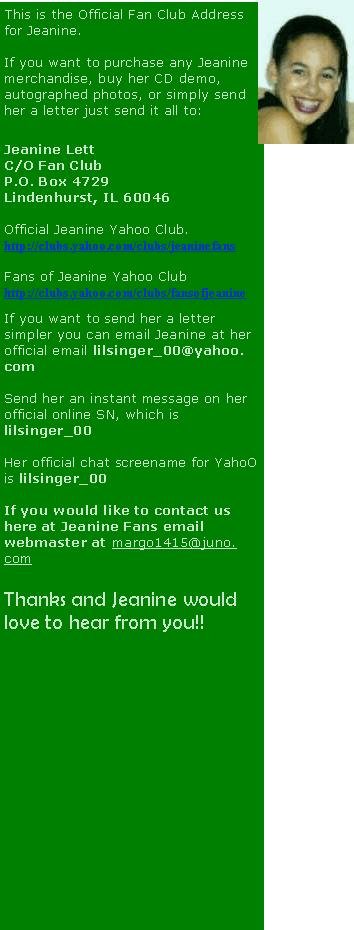 © Jeanine Fans is a fan made site just for the fans and yes we are affliated with Jeanine. Personally information as to where Jeanine lives and things like that will not be given out so don't ask. Read